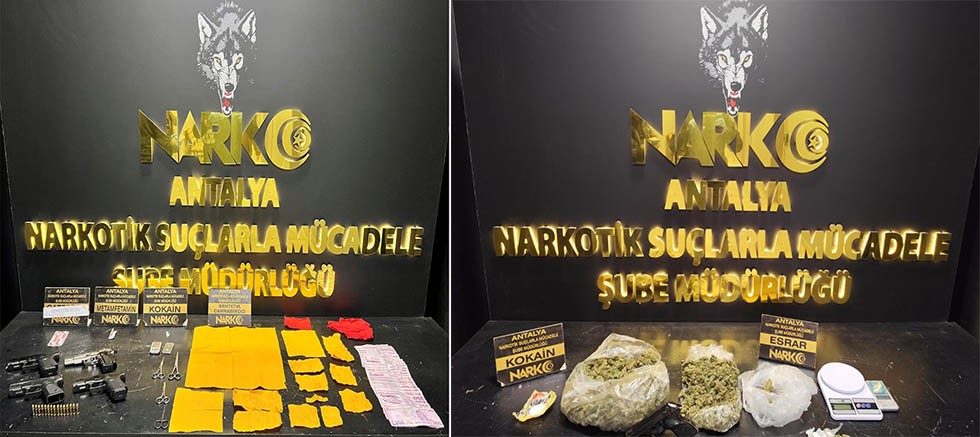 Antalya Emniyet Müdürlüğü'nden yapılan açıklamada şöyle denildi: "Emniyet Müdürlüğümüz Narkotik Suçlarla Mücadele Şube Müdürlüğümüz birimlerince, ilimiz genelinde SON 1 HAFTADA yapılan çalışma ve operasyonlarda;