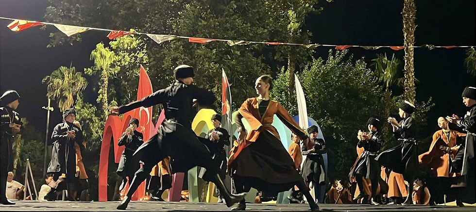 Gürcistan'dan gelen 60 kişilik dansçı grubu, sahnede gerçekleştirdikleri geleneksel dans gösterileri ve müzik performanslarıyla izleyicilerden büyük beğeni topladı.