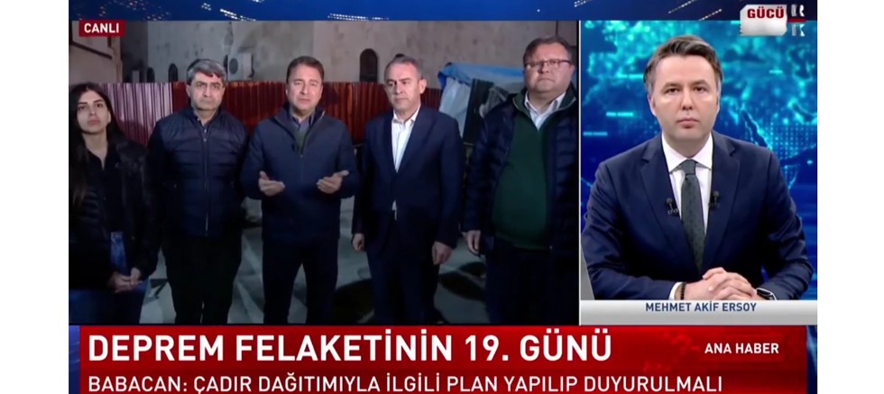 DEVA Partisi Genel Başkanı Ali Babacan, Hatay’da Habertürk canlı yayınında Mehmet Akif Ersoy’un sorularını yanıtladı. Babacan şöyle konuştu: