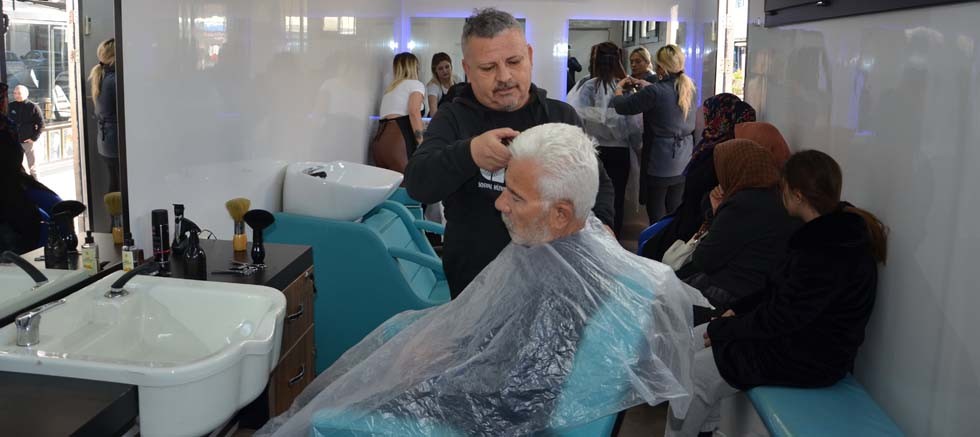 Antalya Büyükşehir Belediyesi deprem bölgesinden Alanya’ya gelen vatandaşlara kuaförlük hizmeti veriyor.