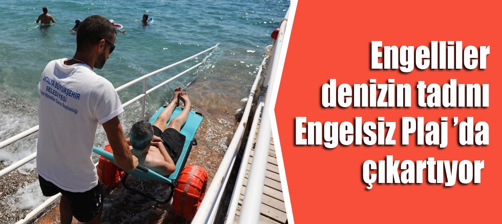 Antalya’da engelli bireyler bu yaz da deniz keyfini Konyaaltı Sahili’ndeki Antalya Büyükşehir Belediyesi Engelsiz Plaj’da çıkartıyor.