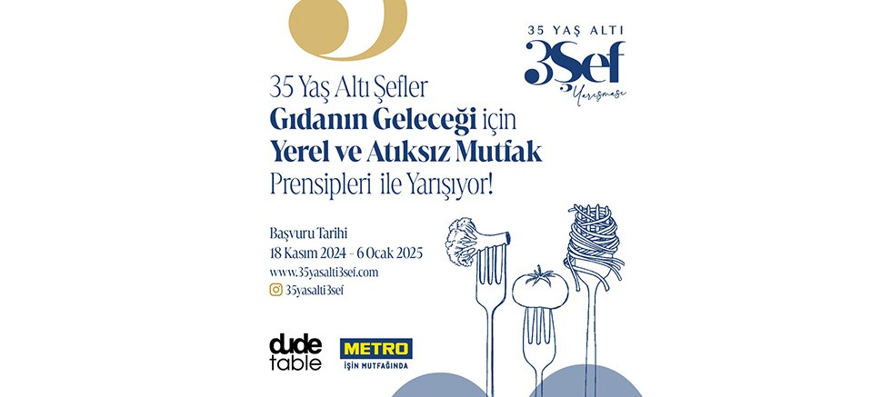 Metro Türkiye’nin ana sponsorluğunda, Dude Table Gastronomi Pazarlama Ajansı tarafından düzenlenen “35 Yaş Altı 3 Şef Yarışması” bu yıl üçüncü kez düzenleniyor. “Gıdanın Geleceği için Yerel ve Atıksız Mutfak” temasıyla gerçekleştirilecek olan yarışma, genç şefleri sürdürülebilir mutfak uygulamaları konusunda cesaretlendirirken, yaratıcı ve sıfır atık menüler oluşturmaya davet ediyor.