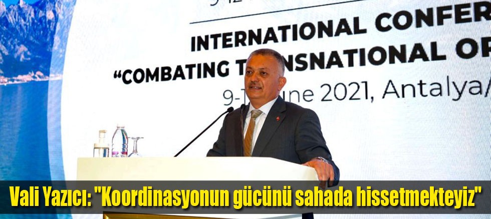 Güvenli bir şehir için koordinasyonun önemine değinen Vali Yazıcı; “İlimizde adli teşkilatımız ile emniyet, jandarma ve sahil güvenlik birimimiz arasında sağlam bir iletişim ve uyum bulunmaktadır. Bu bizim, başta terör olmak üzere uyuşturucu ve diğer konularda başarılı işler çıkarmamıza vesile olmaktadır. Yaklaşık bir yıldır görev yaptığım Antalya’da güvenlik birimleriyle adli makamlar arasındaki koordinasyonun gücünü sahada hissetmekteyiz. Özellikle örgütlü suçlar için sadece ulusal düzeyde ve il düzeyinde çalışmaların yeterli olacağına inanmıyorum. Bunun yanında bölgesel düzeyde uyuşturucu ve örgütlü suçlarla, beraber mücadele etmemiz gerekiyor. Bunun için oluşturulan ve burada da birkaç gün çözüm önerilerinin tartışılacağı bu önemli platform için Antalya’mızı seçtiğinizden dolayı tekrar teşekkür ediyorum.” şeklinde konuştu.