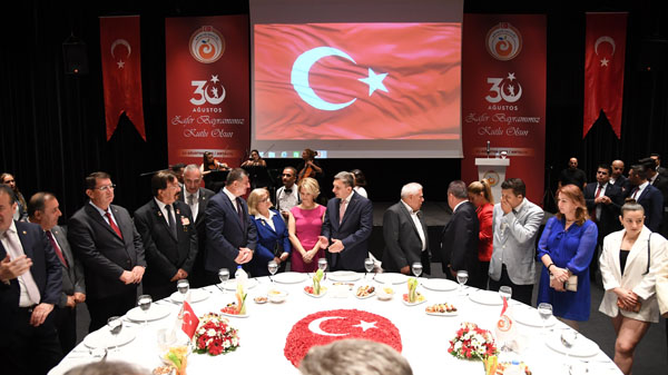 Vali Hulusi Şahin ve eşi Ebru Şahin, 30 Ağustos Zafer Bayramı ve Türk Silahlı Kuvvetleri Günü kapsamında Resmi Kabul Töreni düzenledi. Geniş bir katılımla gerçekleşen törene Antalya İl Protokolü, Kamu Kurum Müdürleri, Sivil Toplum Kuruluşu temsilcileri, Şehit aileleri, Gaziler ve milli sporcular katıldı. Vali Şahin ve Ebru Şahin masaları ziyaret ederek konuklarıyla sohbet edip fotoğraf çektirdi.
