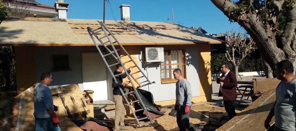 Kemer Belediye Başkanı Necati Topaloğlu’nun öncülüğünde fırtınada çatısı uçan öğretmen lojmanının çatısı Kemer Belediyesi tarafından sil baştan yenileniyor.