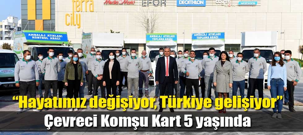 Muratpaşa Belediyesi’nin 5’inci yılını kutlayan Çevreci Komşu Kart projesi, nisan 2016’da iki mahallede pilot çalışma olarak başladı. Kısa sürede tüm ilçede uygulanmaya başlanan projeyle 5 yıl içinde yaklaşık 16 milyon 113 bin kilogram nitelikli atık evlerden toplandı. Muratpaşa sakinleri, atmayıp biriktirdikleri cam, kağıt, plastik ve metalden oluşan nitelikli atıklarla tam 5 milyon 190 bin lira kazandı.