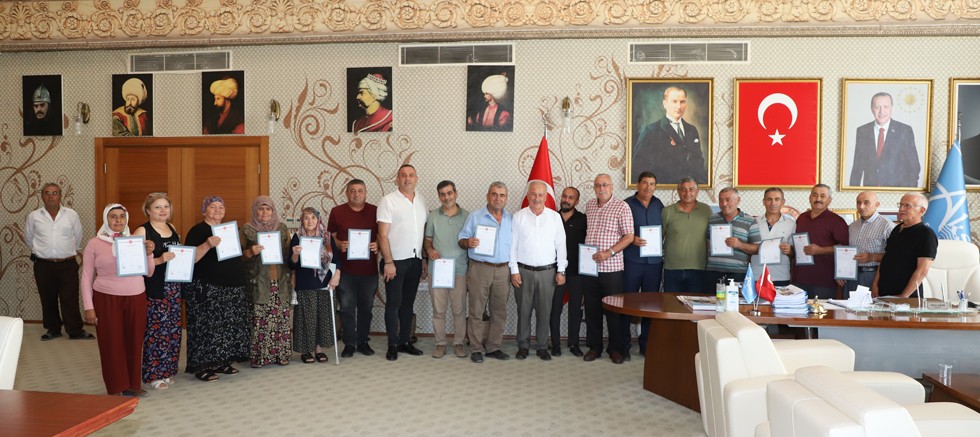 Belediye; mülkiyet sorunu çözülen Pınarlı, Cihadiye, Çamköy Mahallelerindeki hak sahiplerine tapularını vermeyi sürdürüyor. Bu hafta da 15 hak sahibi tapularına kavuştu.