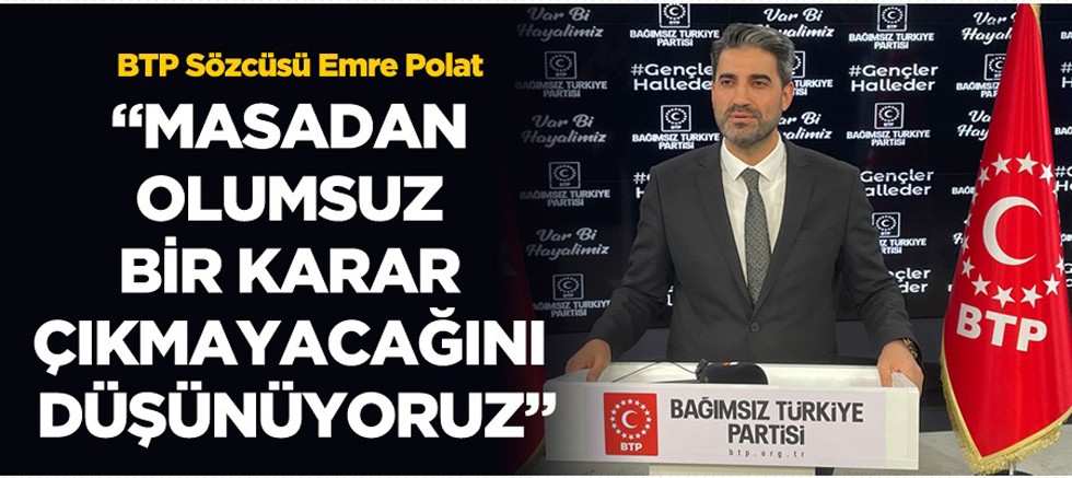BTP Sözcüsü Emre Polat, “Biz altılı masanın sağduyulu bir karar vereceğini ve buradan olumsuz bir karar çıkmayacağını düşünüyoruz." dedi.