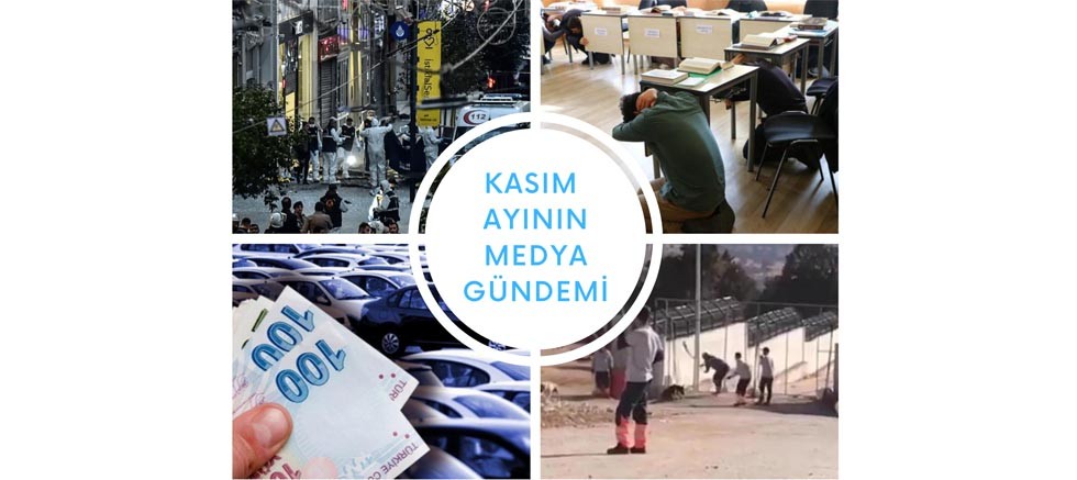 Medya takip kurumu Ajans Press, medyada en çok konuşulan haber başlıklarını çıkardı. Ajans Press’in 1-30 Kasım tarihleri arasında 15 bini aşkın gazete, dergi, TV kanalları ve internet haber sitelerinde en çok haber olan içerikleri çıkardığı araştırmada, ilgili içeriklerde medyaya binlerce haber yansıdı. İstiklal Caddesi’ndeki terör saldırısından Düzce depremine, sahte doktor vakasından karşımıza çıkacak olası zamlara Kasım ayının en çok konuşulanları şu şekilde oldu;