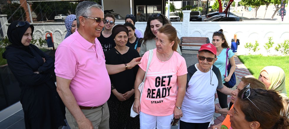 Kemer Belediye Başkanı Necati Topaloğlu, belediye bünyesinde açılan pilates kursundaki kursiyerler ile bir araya geldi.