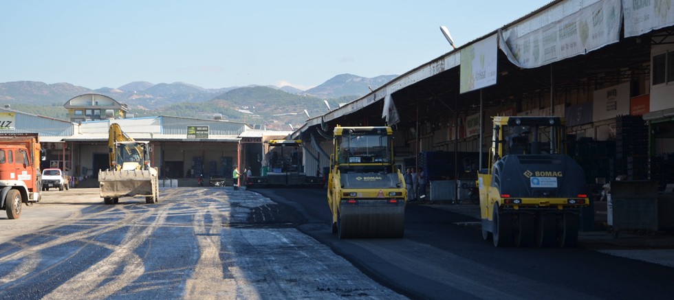 Antalya Büyükşehir Belediyesi, Alanya ilçesi Payallar Toptancı Hali’nin zeminini sıcak asfaltla kapladı.