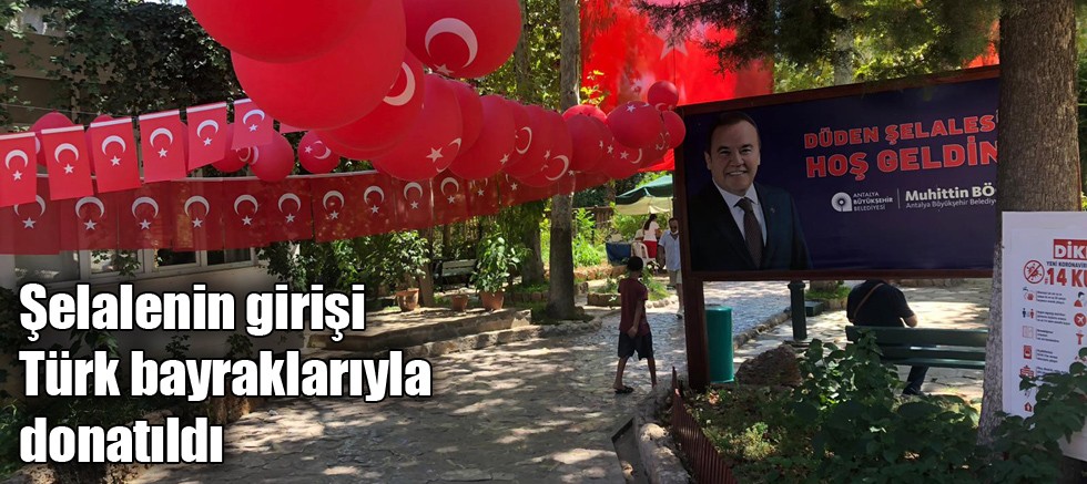 Şelalenin girişi Türk bayraklarıyla donatıldı