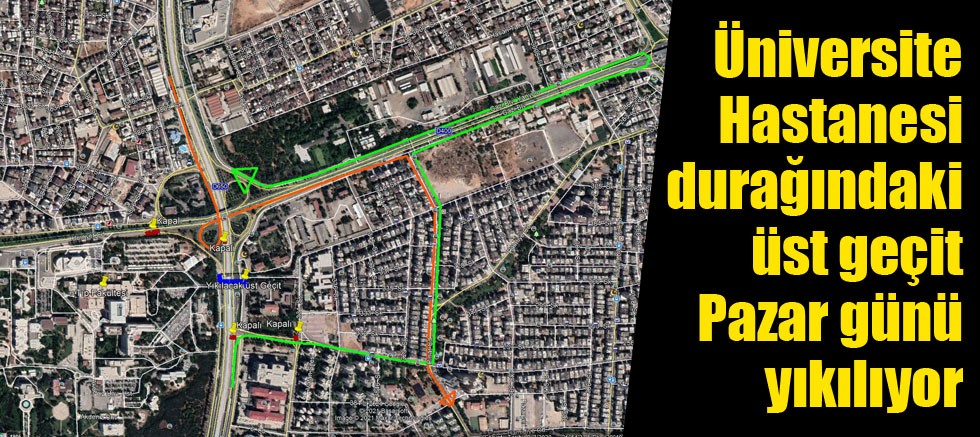 Antalya Büyükşehir Belediyesi’nin 3. Aşama Raylı Sistem çalışmaları kapsamında Dumlupınar Bulvarı üzerinde yer alan Akdeniz Üniversitesi Hastanesi durağındaki mevcut üst geçit 14 Mart Pazar günü yıkılacak. Çalışma süresince sürücülerin alternatif güzergahları kullanmaları istendi.