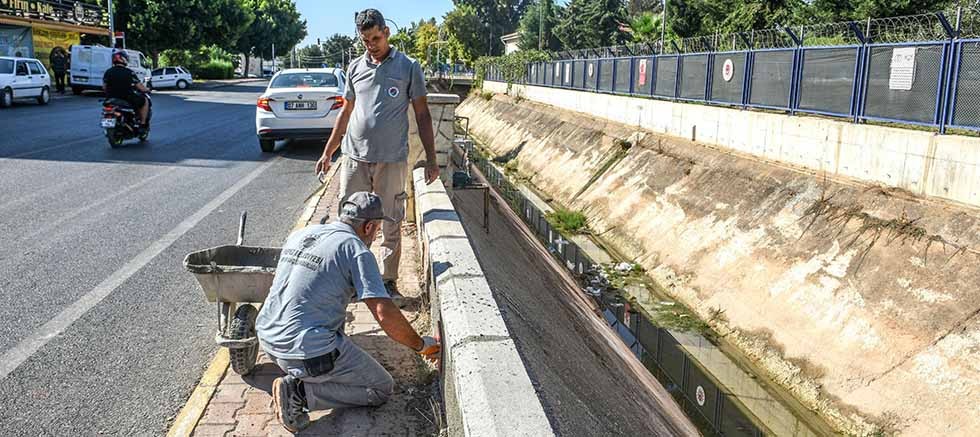 Kepez Belediyesi, temizlik çalışmasının ardından su kanalının koruma duvarında oluşan hasarları tadilat çalışmasıyla ortadan kaldırıyor. Park ve Bahçeler Müdürlüğü çalışanları, kırılan ve çatlak oluşan bölümleri kaldırarak, yerine yeni bir duvar örüyor. Park ve Bahçeler Müdürlüğü yetkilileri, Antalya DSİ 13. Bölge Müdürlüğü’nün koordinasyonunda gerçekleştirilen tadilat çalışmasının kanalın 14 kilometrelik bölümünün tamamında yapılacağını ifade ettiler.