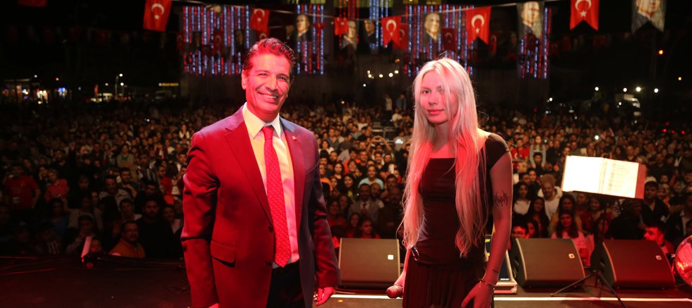 Yaklaşık 1.5 saat süren araç korteji Döşemealtı Kent Meydanı’nda sona erdi. Burada binlerce kişi Cumhuriyet Bayramı coşkusunu yaşamak için alanı doldururken, sahneye ilk olarak DJ Cenk Bayrak çıktı. Alanı dolduranları çaldığı şarkılarla coşturan Bayrak’a ışık efektleri eşlik etti. Ünlü DJ’nin ardından bu kez sahne alma sırası Aleyna Tilki’ye geldi. Ünlü sanatçı sahneye çıktığında kent meydanında ki coşku adeta tavan yaptı. En sevilen şarkı ve türkülerini Döşemealtı halkı için seslendiren genç sanatçı, “Böylesine büyük bir bayram da bu kadar coşkulu insanlarla Cumhuriyetimizin doğum gününü kutlamaktan onur duyuyorum. Çok heyecanlıyım, Cumhuriyet Bayramımız kutlu olsun” diye konuştu.
