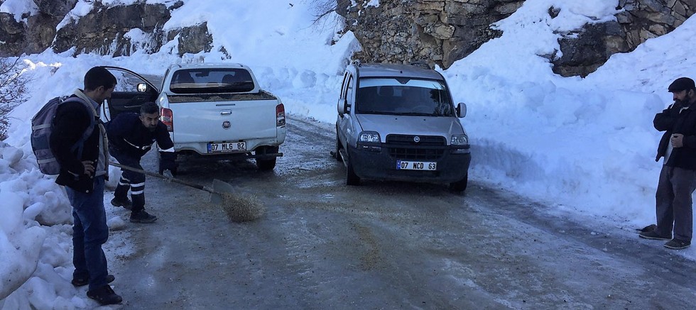 Kar temizleme çalışmalarının tamamlandığı Taşatan Yolu’nda gece sıcaklığın düşmesiyle birlikte buzlanma meydana geliyor. Bölgeye giden vatandaşların herhangi bir olumsuzlukla karşılaşmaması için yolun özellikle Hacıbeleni mevkiinde Büyükşehir ekipleri tarafından tuzlama çalışması gerçekleştiriliyor.