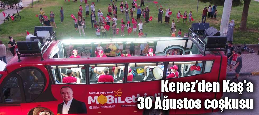 Büyükşehir Belediyesi Bando ve Orkestrası da 30 Ağustos kutlama etkinlikleri kapsamında mobil etkinlik otobüsü ile Kaş ve Demre’de vatandaşlarla buluştu. Konser sırasında vatandaşlar, orkestranın seslendirdiği marş ve şarkılara eşlik ederek eğlenceli zaman geçirdi. Kaş merkezinde limanda konser veren bandonun çaldığı marşlara ve şarkılara Türk bayraklarıyla eşlik eden vatandaşlar alkışlarıyla beğenilerini gösterdi.