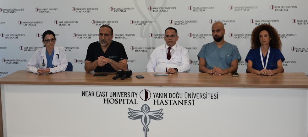 Yakın Doğu Üniversitesi Hastanesi’nde düzenlenen basın toplantısında KKTC 3. Cumhurbaşkanı Dr. Derviş Eroğlu’nun sağlık durumu ile ilgili son gelişmeler basınla paylaşıldı. Yakın Doğu Üniversitesi Hastanesi Başhekimi Prof. Dr. Müfit C. Yenen ile ameliyatı gerçekleştiren kalp ve damar cerrahisi ekibi Prof. Dr. Aşkın Ali Korkmaz, Prof. Dr. Barçın Özcem, Yrd. Doç. Dr. Özlem Balcıoğlu ve Anestezi Uzmanı Dr. Yeşim Tepeli’nin katıldığı basın toplantısında; Dr. Derviş Eroğlu’nun bugün geçirdiği ameliyat ve genel sağlık durumu ile ilgili açıklamalar yapıldı.