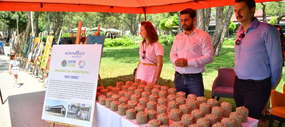 Konyaaltı Belediyesi olarak 5 Haziran Dünya Çevre Günü dolayısıyla bir dizi etkinlik hazırladıklarını söyleyen Çevre Koruma ve Kontrol Müdürü Mustafa Öndegiden, alana gelen vatandaşları, ürettikleri projeler ve sıfır atık konusunda bilgilendirdiklerini söyledi. Öndegiden, ‘’Bu yıl da atıklardan oluşan bir sergi açılışımız oldu. Sıfır atık sistemini anlattığımız atık kodlarıyla beraber, yaklaşık bin 600 noktaya bıraktığımız toplama ekipmanlarını tanıttığımız standlarımız ve ‘’atıktan sanata’’ adlı sergimiz bulunmakta. Yine, belediye personellerimizin ürettiği, doğada bulunan ahşap atıkların yorumlanmasıyla üretilen ahşap dekoratif ürünler de standlarımızda sergileniyor. Amacımız, ilçemizi marka ve yeşil bir kent anlayışı içerisinde, çağdaş ve muadillerinin üzerine çıkarmaktır’’ şeklinde konuştu.