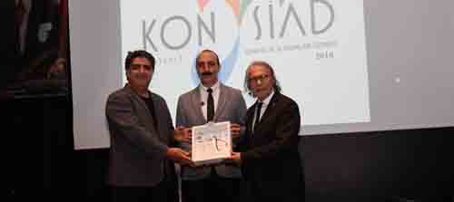 Başkan adaylarına konuşmaları sonrası Mustafa Kemal Atatürk’ün imzalarından oluşan plaketi, KONYSİAD Başkanı İlhami Kaplan, geçen dönem Başkanı Av. Bora Terzioğlu, Başkan Yardımcıları Hanefi Demir ve Cihan Taşkınla takdim etti.