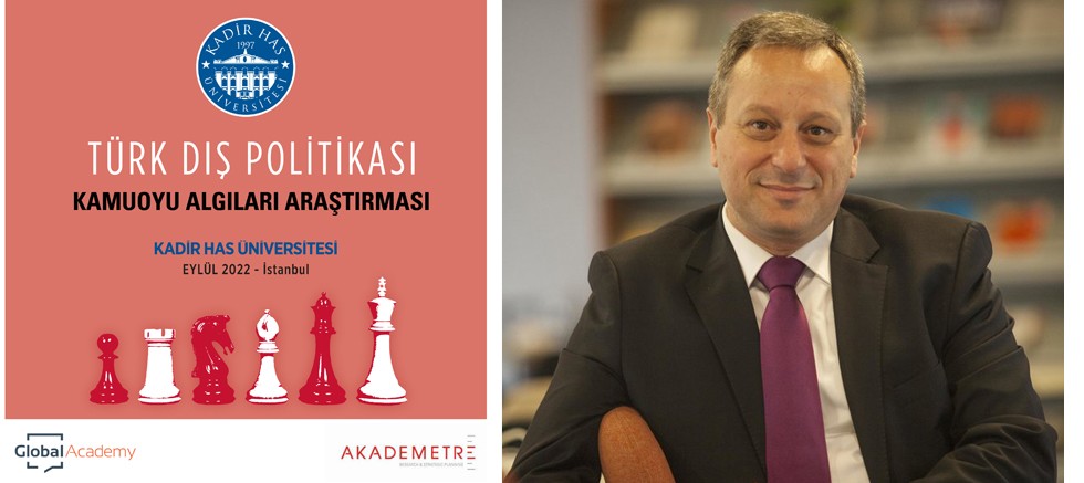 2013 yılından bu yana Kadir Has Üniversitesi Öğretim Üyesi Prof. Dr. Mustafa Aydın koordinasyonunda akademik bir ekip tarafından yürütülen ve 10 yıldır Türkiye’nin nabzını tutan “Türk Dış Politikası Kamuoyu Algıları Araştırması”nın 2022 yılı sonuçları açıklandı. Türkiye temsiliyetine sahip 26 ilde yaşayan 18 yaş üzeri 1.000 kişiyle yapılan görüşmelere dayanan çalışmaya göre Türkiye dış politikasına en önemli sorun “sınır ötesi terörle mücadele”. “İsrail ile ilişkiler” ikinci sıraya yerleşirken, “ABD ile ilişkiler” üçüncü sırada yer alıyor.