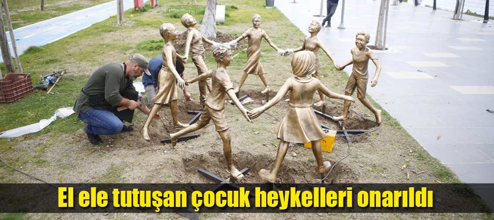 Boğaçayı Parkı’nda bulunan el ele tutuşan 7 çocuk heykeli geçtiğimiz aylarda tahrip edilmişti. Bir heykel yerinden sökülüp götürülürken, bir heykelin sadece bacağı bırakılmış, diğer heykellerin de kol, parmak ve bacakları kırılmıştı. Büyükşehir Belediyesi Kent Tarihi ve Tanıtım Daire Başkanlığı, olayın ardından zarar gören heykelleri onarılması için çalışma başlattı. Heykeller, eseri yapan Bitki Sanat Peyzaj Atölyesi tarafından onarılarak, eksik olan bölümleri tamamlandı. Bakım yapılan heykeller boya işleminin ardından Boğaçayı Parkı’ndaki yerlerine monte edildi. Sosyalleşmenin dijitalde değil mahallede olduğunu ve mahalle kültürünün önemini vurgulayan el ele tutuşan 7 çocuk heykeli tekrar yerlerine kavuştu.
