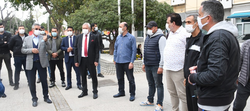 Belediye önünde toplanan esnaf, yanlarında olduğu için Başkan Topaloğlu’na teşekkür etti.