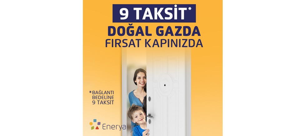 Doğal gaza geçişi kolaylastıran Enerya, faaliyet gösterdiği 10 ilde, abonelik başlangıcında bir defaya mahsus ödenen doğal gaz bağlantı bedeline 9 taksit avantajı sunuyor. Kampanyadan faydalanarak doğal gazın konforunun tadını çıkarmak için son gün 31 Mayıs.