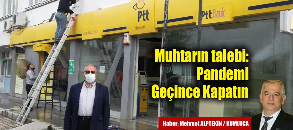Yaklaşık 11 Bin nüfuslu Mavikent ve 9 Bin nüfuslu Beykonak Mahallelerine hizmet veren PTT Şubesi, yeterli müşteri olmaması ve zarar ediyor gerekçesi ile kapatıldı. Konuyla ilgili açıklama yapan Mavikent Mahalle Muhtarı Âdem Karataç; “Mahallemizde, yaklaşık 30 yıldan beri hizmet veren PTT Şubesi, zarar ediyor gerekçesi ile kapatıldı. Mahallemizin 11 Bin nüfusu var. Komşu mahallemiz Beykonak Mahallesinin de 9 Bin nüfusu var. Bu şube her iki Mahalleye de hizmet veriyordu. Ayrıca, Mavikent ve Beykonak mahallelerinin sınırında, Beykent Toptancı Hali var. Bu Toptancı Hali, bölgenin en büyük Toptancı Hallerinden birisidir. Bu Şubenin kapatılması, her iki Mahallenin ve Toptancı Hali'nde çalışan işçilerin mağdur olmasına sebep oldu. Kumluca Merkez PTT de, uzun kuyruklar oluşuyor. Bir de Koronavirüs salgınını göz önünde bulundurursak, bu şubenin kapatılmaması gerekiyordu. Yetkililerimizden, halkımızı mağdur edecek ve virüs salgının yoğun yaşandığı bu dönemde, bulaşılara neden olacak bu uygulamadan vazgeçilmesini talep ediyoruz” dedi.