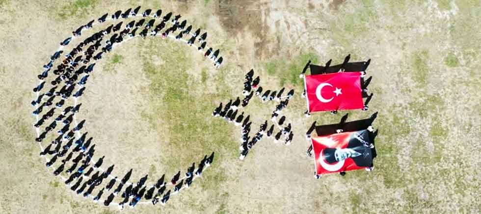 Atatürk’ün Cumhuriyet’i emanet ettiği gençler, Atatürk’e saygılarını ve Cumhuriyet’e sevgilerini göstermek amacıyla vücutlarıyla Hilal ve Ay Yıldız çizerek dev Atatürk ve Türk Bayrağı açtı.