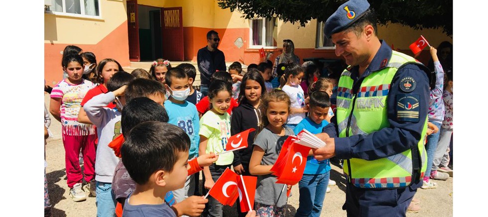 Antalya İl Jandarma Komutanlığı Kumluca İlçe J.K.Lığı Trafik timlerince 23 Nisan Ulusal Egemenlik ve Çocuk Bayramı dolayısıyla Kumluca Darıyemezler Mahallesi'nde bulunan ortaokul öğrencilerine Türk bayrağı dağıtıldı.