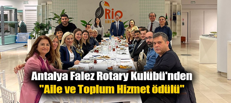 Antalya Falez Rotary Kulübü'nün geleneksel " Aile ve Toplum Hizmet Ödülü" RioKids World Çocuk Eğitim Merkezinde gerçekleştirilen toplantıyla 2024 yılı içerisinde gerçekleştirilen projelere ve etkinliklere destek veren 4 (dört) Rotaryen Eşine (Roteş) verildi.