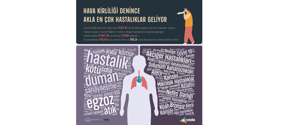 Ailelerin yüzde 87,4’ü çocuklarının hava kirliliği yüzünden sağlık sorunları yaşamasından kaygılı. Türkiye’de her dört kişiden biri ailelerinde ve çevrelerinde kirli hava sebebiyle hastalığa yakalanan biri olduğunu belirtiyor. Hastalığa yakalanan her üç kişiden birinin ise hayatını kaybettiği beyan edilmiş. Toplumun yüzde 73,8’i hava kirliliğinin sonucunun ölüm olabileceğinin farkında.
