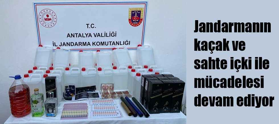 "Antalya İl Jandarma Komutanlığınca kaçak ve sahte İçki ile mücadeleye kararlılıkla devam etmektedir. Bu kapsamda sahte içki üreterek piyasaya süren şüphelilere yönelik yapılan çalışmalar neticesinde Kepez, Aksu ve Manavgat ilçelerinde dört ayrı yerde yapılan aramalar neticesinde dört Şüpheli hakkında adli işlemlere başlanılmıştır.