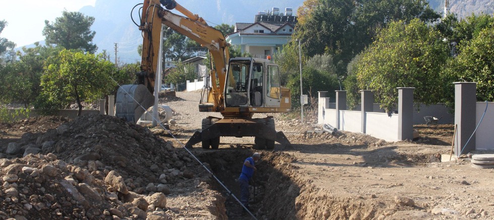 Antalya Büyükşehir Belediyesi ASAT Genel Müdürlüğü, Kemer’in Göynük Mahallesi’nde yeni imara açılan bölgelere kanalizasyon hattı yapılıyor.