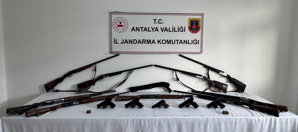 "Antalya İl Jandarma Komutanlığınca yürütülen çalışmalar sonucu Alanya Cumhuriyet Başsavcılığı talimatları doğrultusunda; Alanya İlçesinde ruhsatsız silah bulunan (5) ayrı adreste Antalya İl J.K.lığı ekiplerince yapılan aramada;