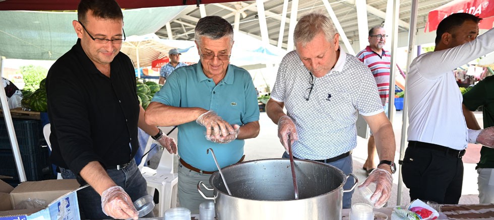 Aşure kazanının başına geçen Başkan Topaloğlu ve beraberindekiler, elleriyle vatandaşlara aşure ikram etti. Pazar alanına alışveriş için gelen vatandaşlarla da sohbet eden Başkan Topaloğlu, vatandaşların isteklerini de dinleyerek not aldı.