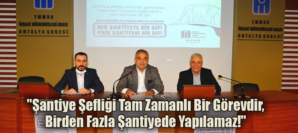 TMMOB İnşaat Mühendisleri Odası Antalya Şubesi Yönetim Kurulu'ndan yapılan açıklamada şantiye şefliğinin tam zamanlı bir görev olduğu ve birden fazla şantiyede yapılamayacağı belirtildi.