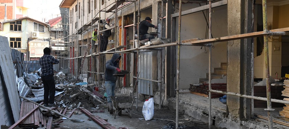 Tarihi Üzüm Pazarında restorasyon çalışmaları 4. etapla devam ediyor. Bu etapta 1’i tescilli 37 dükkanın restorasyon çalışmaları gerçekleştiriliyor. Çalışmalarda projeye uygun olarak dükkanların çatı ve dış cepheleri tadilattan geçilirken, sıva işlemleri yapılıyor, ahşap doğrama ve camları monte ediliyor. 4. etaptaki çalışmalarda bugüne kadar dükkanların belli bir bölümünün çatı tadilatları tamamlanırken, kalan kısımda çalışmalar sürüyor. Ayrıca sıva işlemleri ve dükkanların ahşap doğrama çalışmaları da tüm hızıyla devam ediyor.