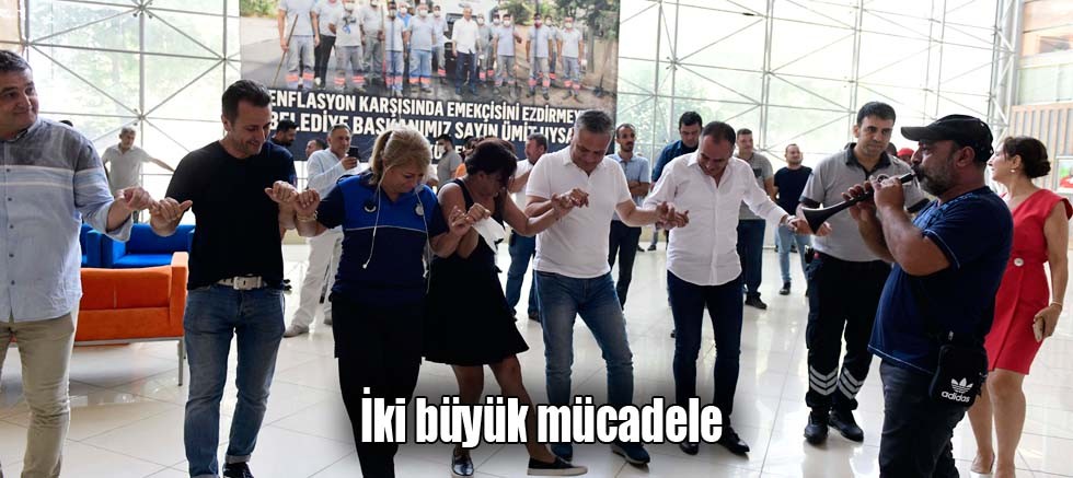 Antalya’da Muratpaşa Belediyesi’nde yaklaşık 2 bin 200 çalışanı ilgilendiren toplu iş sözleşmesinin imzalanması belediye fuayesinde işçiler, Belediye-İş Sendikası yöneticileri, belediye meclis üyeleri ve Başkan Ümit Uysal’ın da katıldığı törenle kutlandı. Davul-zurna eşliğinde halayların çekildiği kutlamalarda, işçiler “Enflasyon karşısında emekçisini ezdirmeyen Belediye Başkanımız Sayın Ümit Uysal’a teşekkür ederiz” yazılı pankart astı.