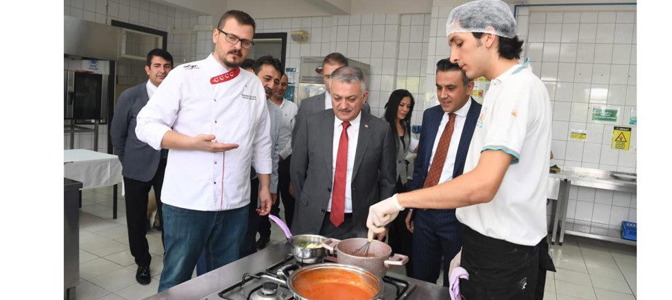 Tez Tur Mesleki ve Teknik Anadolu Lisesi’nin, Antalya’nın dünya standartlarındaki otelleri için kaliteli ve donanımlı ana eleman yetiştirdiğine vurgu yapan Vali Yazıcı; “Bu meslek lisesinde okuyan her bir birey turizmin başkenti olan Antalya’da en iyi otellerde hizmet verecek. Burada aldığınız kaliteli eğitim ve yaptığınız uygulamalı eğitim ile mesleğinize bir sıfır önde başlayacaksınız. Ben şehrimizin yalnızca doğal güzellikleri ile değil damak çatlatan lezzetleriyle de tercih sebebi olmasını istiyorum. Bugün mutfak atölyenizi gezdim aldığınız eğitim ve çıkardığınız ürünleri inceledim. Hepinizle gurur duydum. İnanıyorum ki bu okuldan mezun gençlerimiz ileride adını dünyaya duyuran başarılı şefler çıkartacak. Kim bilir belki Antalya’nın ilk Michelin Yıldızlı restoranını siz açarsınız. Hedefiniz hep yüksek olsun.” dedi.