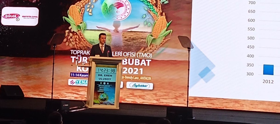 Türkiye’nin 7 yıldır un sektöründe dünyanın ihracat şampiyonu olmasında büyük katkı sunan Türkiye Un Sanayicileri Federasyonu (TUSAF)’ın Antalya Titanic Mardan Palace-Trendy Lara’da Toprak Mahsulleri Ofisi (TMO) ile birlikte düzenlediği “Türkiye Hububat Kongresi 2021/16. TUSAF Uluslararası Kongre ve Sergisi” 12 Kasım Cuma günü başladı. Yerli ve yabancı 1000 delegenin ağırlandığı ve ana temasının “İklim Değişikliği ve Küresel Salgın” olduğu kongrenin açılışı Tarım ve Orman Bakanı Dr. Bekir Pakdemirli’nin, TMO Yönetim Kurulu Başkanı ve Genel Müdürü Ahmet Güldal’ın, Türkiye Odalar ve Borsalar Birliği Sayman Üye Faik Yavuz’un ve TUSAF Başkanı Dr. Eren Günhan Ulusoy konuşmalarıyla başladı.