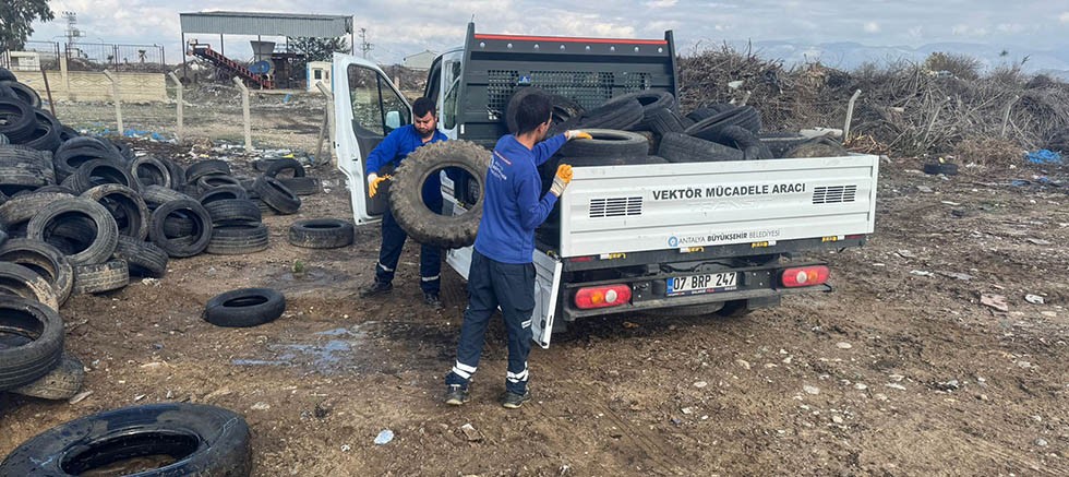 Sinek ve haşere ile mücadele çalışmalarını etkin bir biçimde sürdüren Antalya Büyükşehir Belediyesi, kış aylarında da üreme kaynaklarının ortadan kaldırılması için yoğun çaba harcıyor. Eski, kullanılmayan ve çevreye gelişi güzel bırakılan araç lastikleri de içlerine dolan sular yüzünden sinekler için önemli bir üreme alanı oluyor. Büyükşehir ekipleri, yağışların da başlamasıyla ilçelerde gelişi güzel bırakılan araç lastiklerini toplama çalışmalarına hız verdi. Toplanan onlarca araç lastiği ile sineklerin en önemli üreme kaynaklarından biri kurutulurken, bu lastiklerinin geri dönüşüme gönderilmesi ile de çevre kirliliğin önüne geçiliyor.