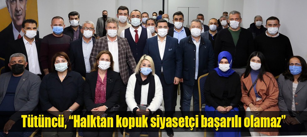 Kepez Belediye Başkanı Tütüncü, siyasetteki başarı formülünü de şu sözlerle anlattı: “Siyasette başarı grafiği, gündüzden geceye, geceden gündüze oluşan bir şey değil. Siyasette başarı, planlı, programlı, disiplinli çalışmayı ama mutlaka halkla birlikte de yürümeyi gerektirir. Siyasetin sahnesi caddelerdir, sokaklardır. Siyasetin öznesi insandır. İnsandan kopuk, halkın gerçeklerinden uzak bir siyaset tarzı başarıya ulaşabilecek bir metot değildir Bunu zaten biz AK Partiler olarak biliyoruz. Çok konuşan değil ama çok dinleyen, dinlediklerinden yola çıkarak çareler üreten bir teşkilat yapısını bütün ilçelerimizde egemen kılmamız gerekiyor. O yüzden insanların dertleriyle dertlenmeliyiz.