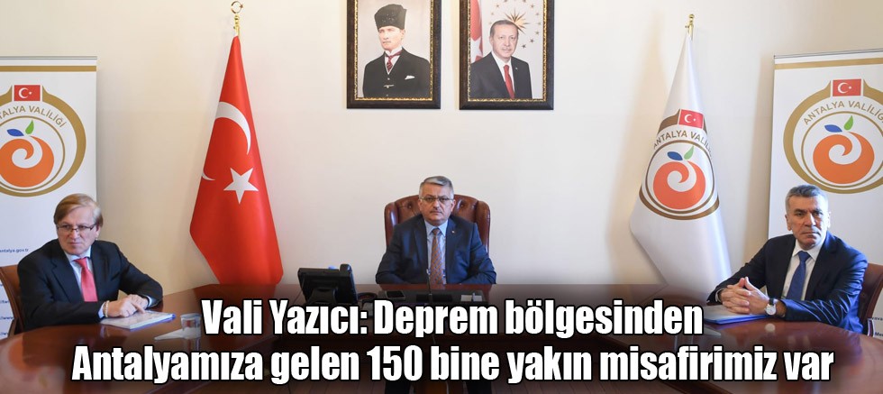Vali Ersin Yazıcı, Vali Yardımcıları ve ilçe Kaymakamlarının çevrimiçi katılımlarıyla “Afet Değerlendirme ve Koordinasyon Toplantısı” gerçekleştirdi. Antalya’da otel, kamu misafirhanesi, KYGM yurtları ve tanıdıkları yanında kalan toplam 150 bine yakın depremzede vatandaşın olduğunu söyleyen Vali Yazıcı; “Depremzede vatandaşlarımızın şehrimizde herhangi bir mağduriyet yaşamamaları için, vatandaşlarımızı rahat ettirmek için çalışmalarımız devam ediyor.” dedi.