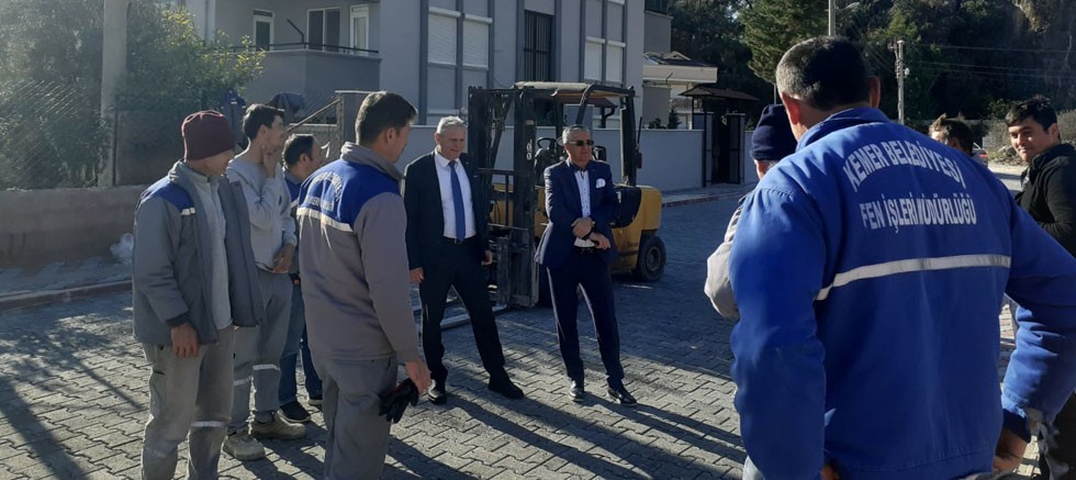 Kemer Belediye Başkanı Necati Topaloğlu, Kuzdere Mahallesi Ballıtaş mevkiinde yol ve kaldırım çalışmalarını yerinde inceledi.