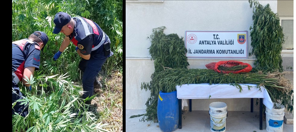 "Serik Cumhuriyet Başsavcılığının koordinesinde, Serik Cumhuriyet Başsavcılığı koordinesinde Antalya ili Serik ilçesi Abdurrahmanlar mahallesinde ; Uyuşturucu Madde ile mücadele kapsamında yapılan çalışmalar neticesinde, sazlıklar arasına gizlenmiş ve bakımları yapılmış vaziyette yasadışı kenevir bitkisi ekimi yapıldığı tespit edilmiştir. Antalya İl J.K.lığı KOM Şube Müdürlüğü, Serik İlçe Jandarma Komutanlığı Jasat Timleri ve Gebiz J.Krk.K.lığı ekiplerince bahse konu sazlık alanda yapılan arama neticesinde: