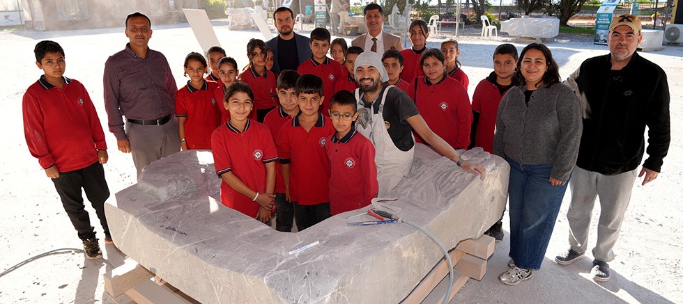 20. Uluslararası Alanya Taş Heykel Sempozyumu, öğrencileri sanatla buluşturuyor. Mahmutseydi Hamdullah Emin Paşa Ortaokulu öğrencileri sempozyum alanını ziyaret ederek, devam eden çalışmaları yakından inceledi ve sanatçılarla bir araya geldi.