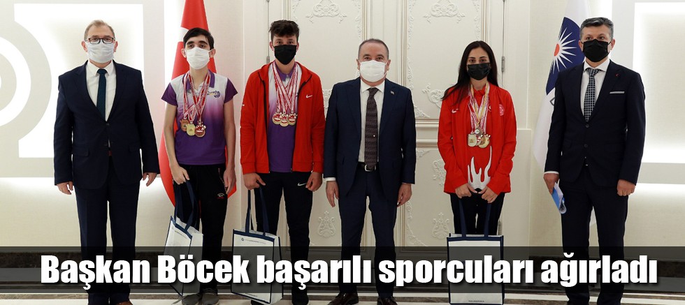 Antalya Büyükşehir Belediye Başkanı Muhittin Böcek, makamında sporcuları konuk etti. Başkan Böcek’in ilk konukları dart sporcuları oldu. Dartta 18.Akdeniz Oyunları Genel Klasman Üçüncüsü Nesibe Yıldız, Dünya Dart Federasyonu (WDF) Virtual Cup Dünya Kupası Grup Beşincisi İsa Furkan Coş, WDF Turkish Open Birincisi Emirhan Kan Gündüz, Dart Antrenörü Erdoğan Kaş ile birlikte Başkan Muhittin Böcek’i ziyaret etti. Antalya’yı dart sporunda en iyi şekilde temsil eden gençleri başarılarından dolayı kutlayan Başkan Muhittin Böcek, çeşitli hediyeler verdi.