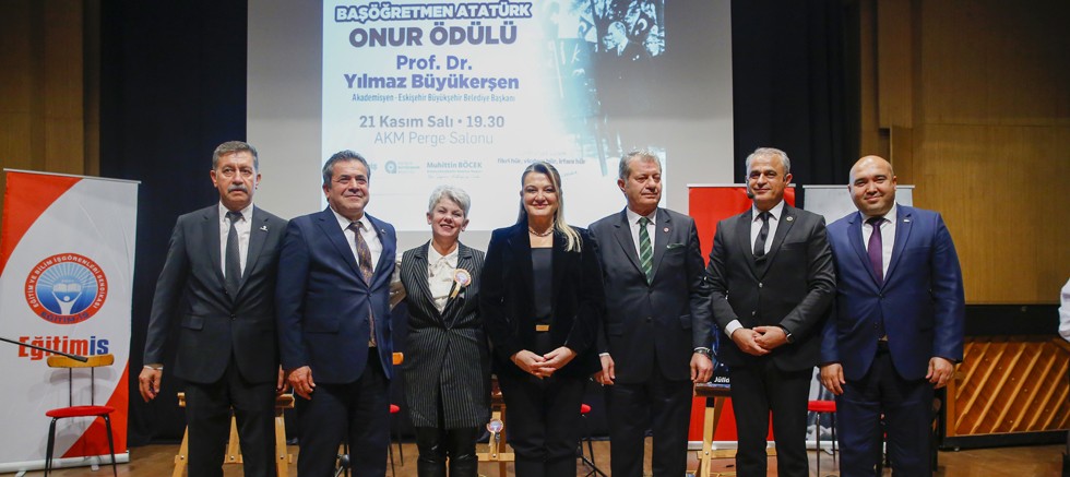 Antalya Büyükşehir Belediyesi ve Eğitim İş Sendikası’nın işbirliğiyle düzenlenen 15. Başöğretmen Atatürk Onur Ödülü Eskişehir Büyükşehir Belediye Başkanı Yılmaz Büyükerşen’e verildi. AKM’de düzenlenen törende ödülü Büyükerşen adına Eskişehir Büyükşehir Belediyesi Başkan Vekili Mustafa Önder aldı.